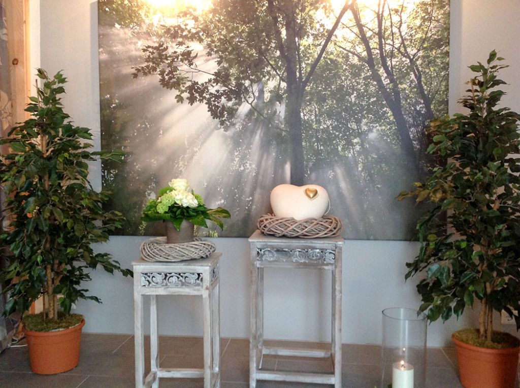 In unseren eigenen Abschiedsräumen und Trauerhallen schaffen wir einen Ort des stillen Gedenkens.